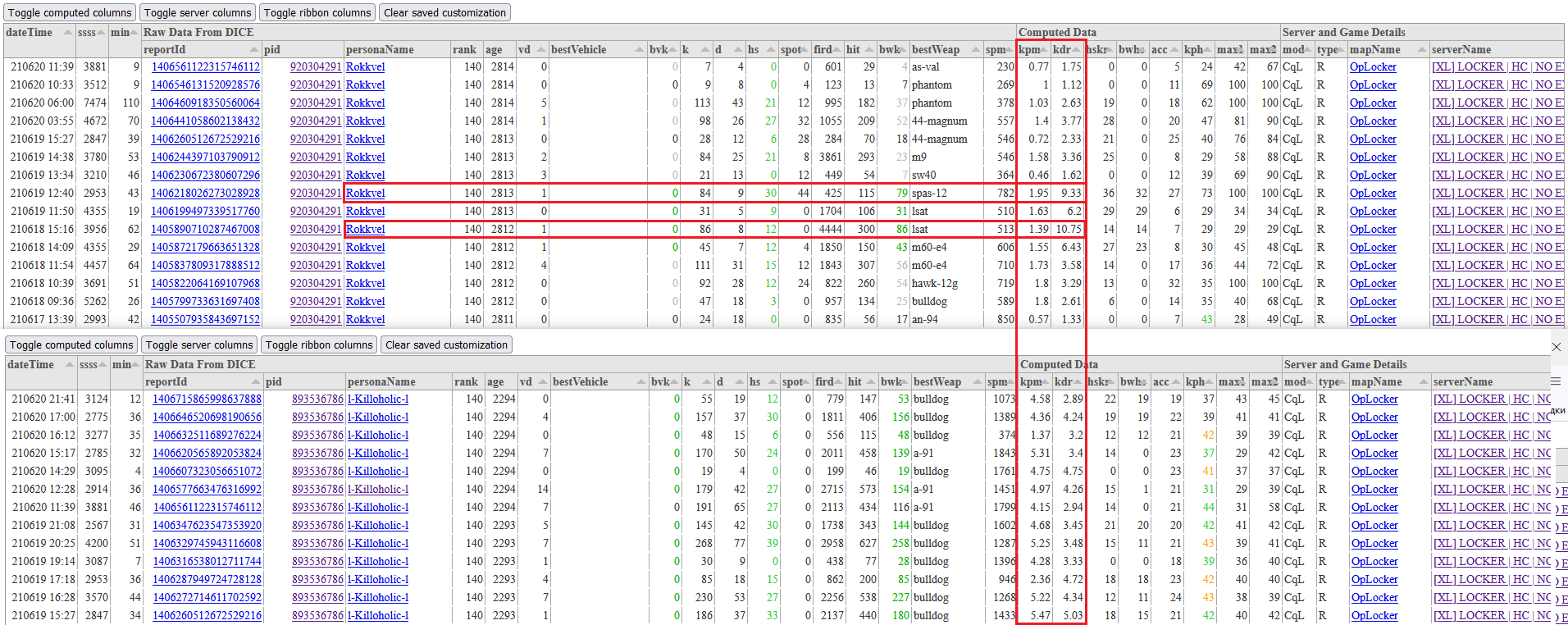 По всем остальным показатель заявитель явно уступает. При этом оба игрока постоянно играют только на локере. Собственно вот для примера отчеты сервера по обоим игрокам: